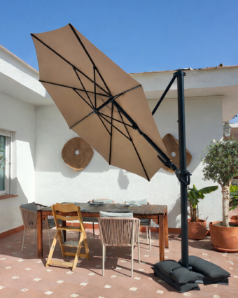 Der ideale Platz für deinen Ampelschirm ist dort, wo der seitliche Mast zur Sonne zeigt – besonders während der intensivsten Sonnenstunden. Ampelschirme sind perfekt für Essbereiche oder Loungemöbel, bei denen klassische Schirme durch den Mittelmast stören würden.